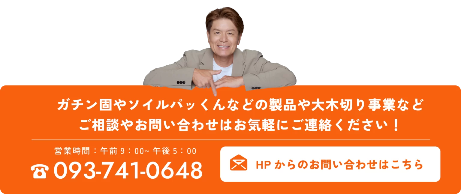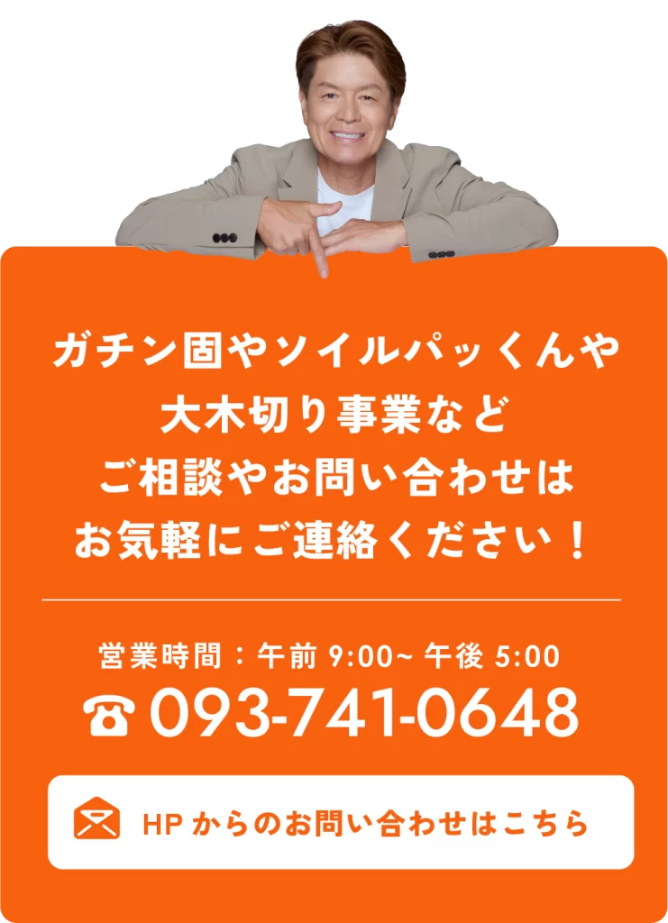 大木伐採・造園・自然土舗装材「ガチン固」や「ソイルパッくん」の開発、公共施設や公園の指定管理など、