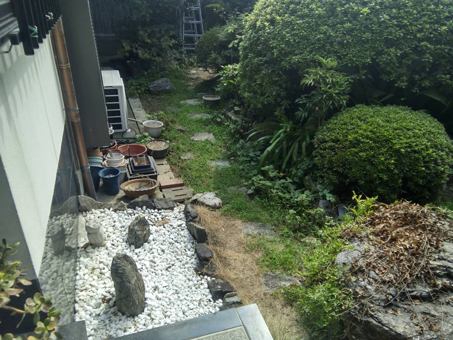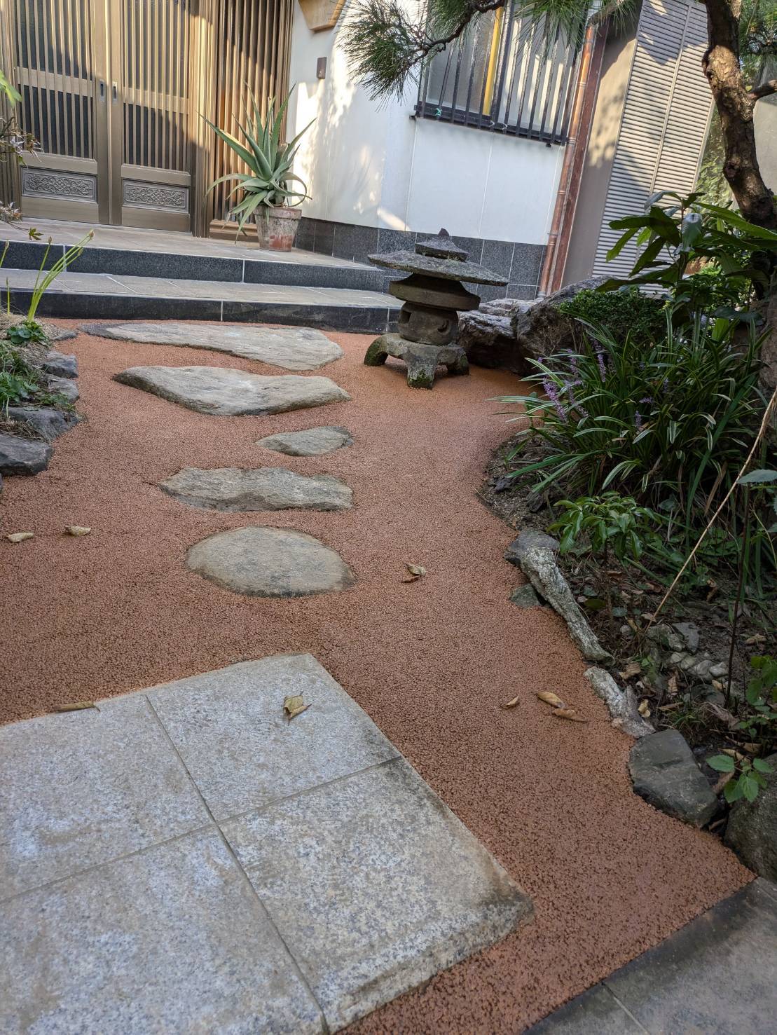 2025年8月21日 / 最終更新日時 : 2025年8月21日 オーエヌグループ ガチン固ガチン固(民間工事) 石の隙間から生えた無数の草がゼロに!ガチン固ライトブラウンでお庭が大変身! ☆R6,9月小倉北区 施工前の問題点 ・庭石の隙間等から雑草が生え、定期的にメンテナンスをする必要がある。・雨が降ると地面が滑りやすくなる。・雑草が伸びてくることで圧迫感を感じる。 解決策 弊社では、ガチン固(ライトブラウン)を使用して施工を行い、以下のような改善を実現しました。 雑草対策:お庭全体をガチン固施工することで、除草作業をなくす。 庭石の隙間や地面に生えた雑草を何度も抜かないといけなかった作業がなくなります。 メンテナンスと言えば庭木の剪定程度になるので、お庭のお手入れが楽になり、時間もかからなくなります。 また、害虫の発生も抑えられるので、安心してお庭作業を楽しむことが出来ます。地面の肌が出てきたことで圧迫感なく、広々と見えるお庭になりました。 美観の向上: お庭や勝手口付近がガチン固の色に統一されたことでお家全体がスッキリ整えられた清潔感のある見た目になりました。 また、ライトブラウンが差し色になり、明るい印象に変わりました。 この施工により、以前は煩わしかった除草作業が不要となり、事故防止と美観が飛躍的に向上しました。お客様からも大変ご満足いただいております! お庭や外構の改善に関するご相談は、お気軽にどうぞ! どんなお庭でも、ガチン固を使用することで手軽に美観と機能性を向上させることができます。 お悩みの方は、ぜひ一度ご相談ください。