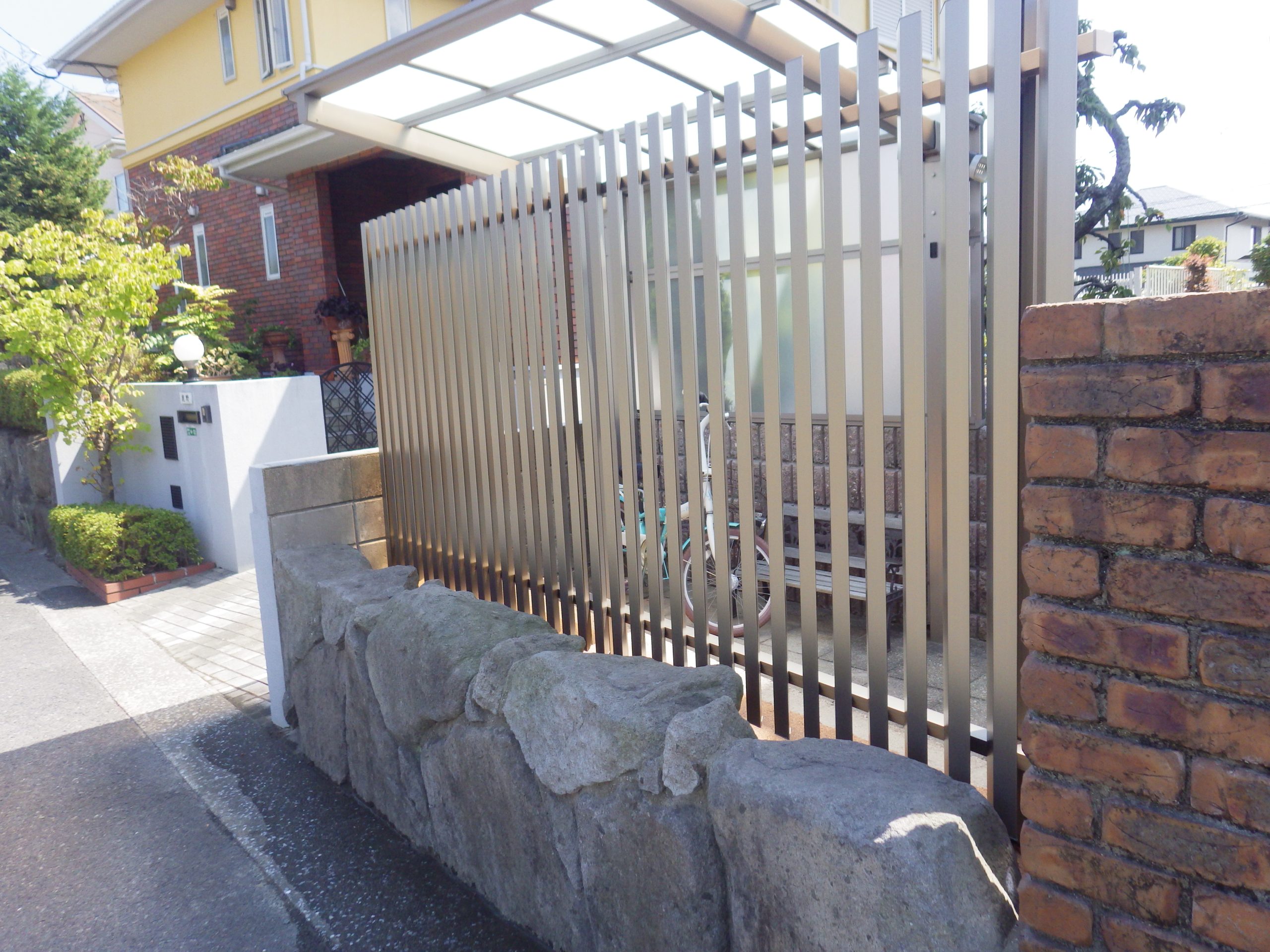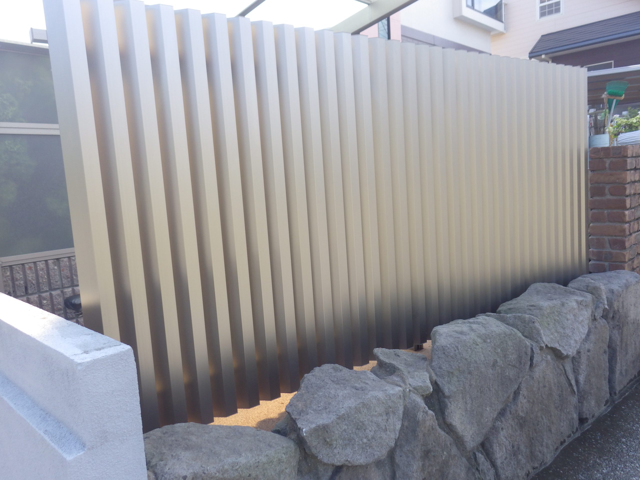 目隠しのために使用してきた樹木をフェンスに換える施工を行いました。